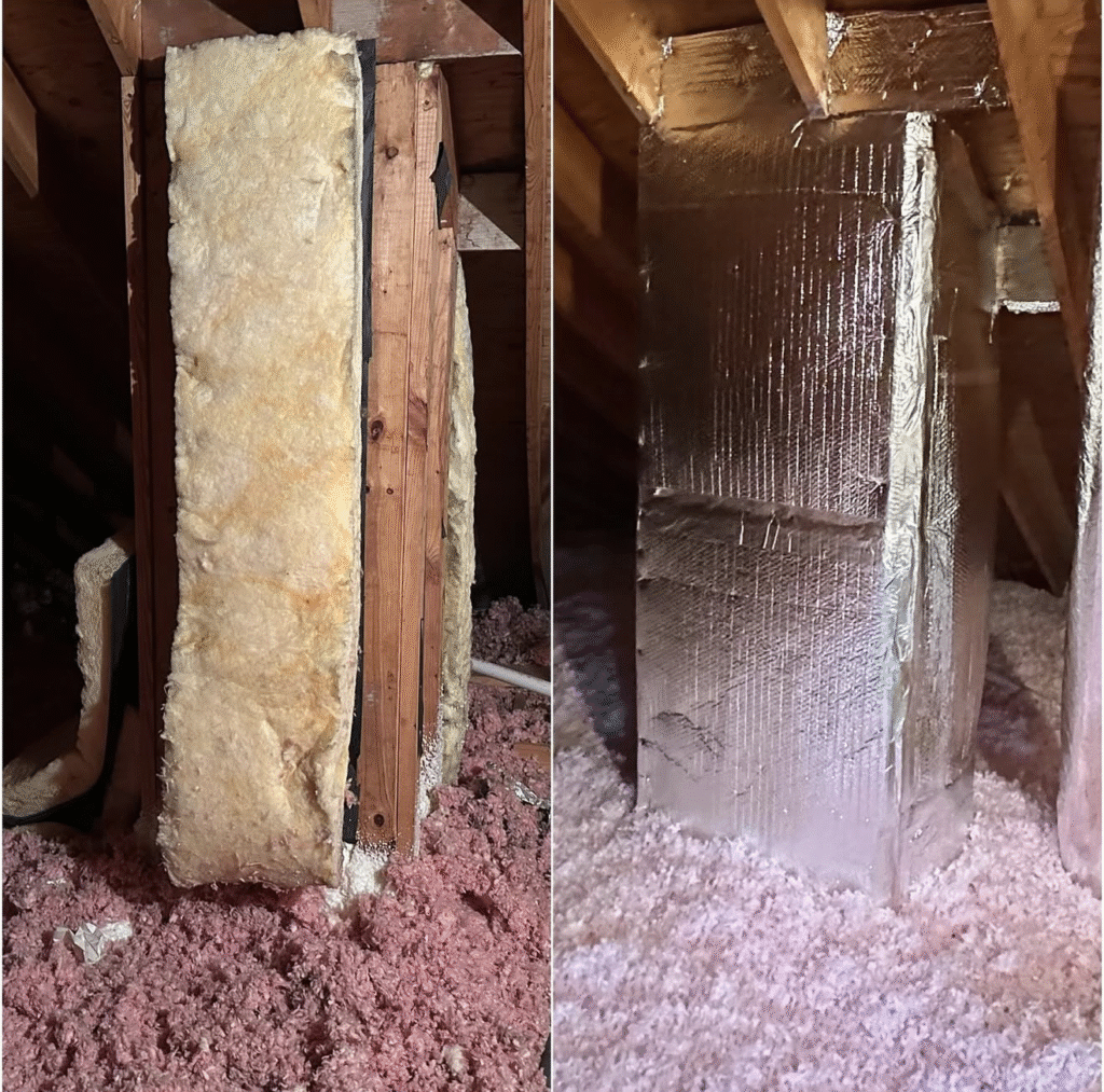 The main loss of energy is not having gaps sealed off. Just insulating isn’t enough. We foam seal any areas with gabs, including skylights, framing gaps, electrical, plumbing, and ceiling fans.